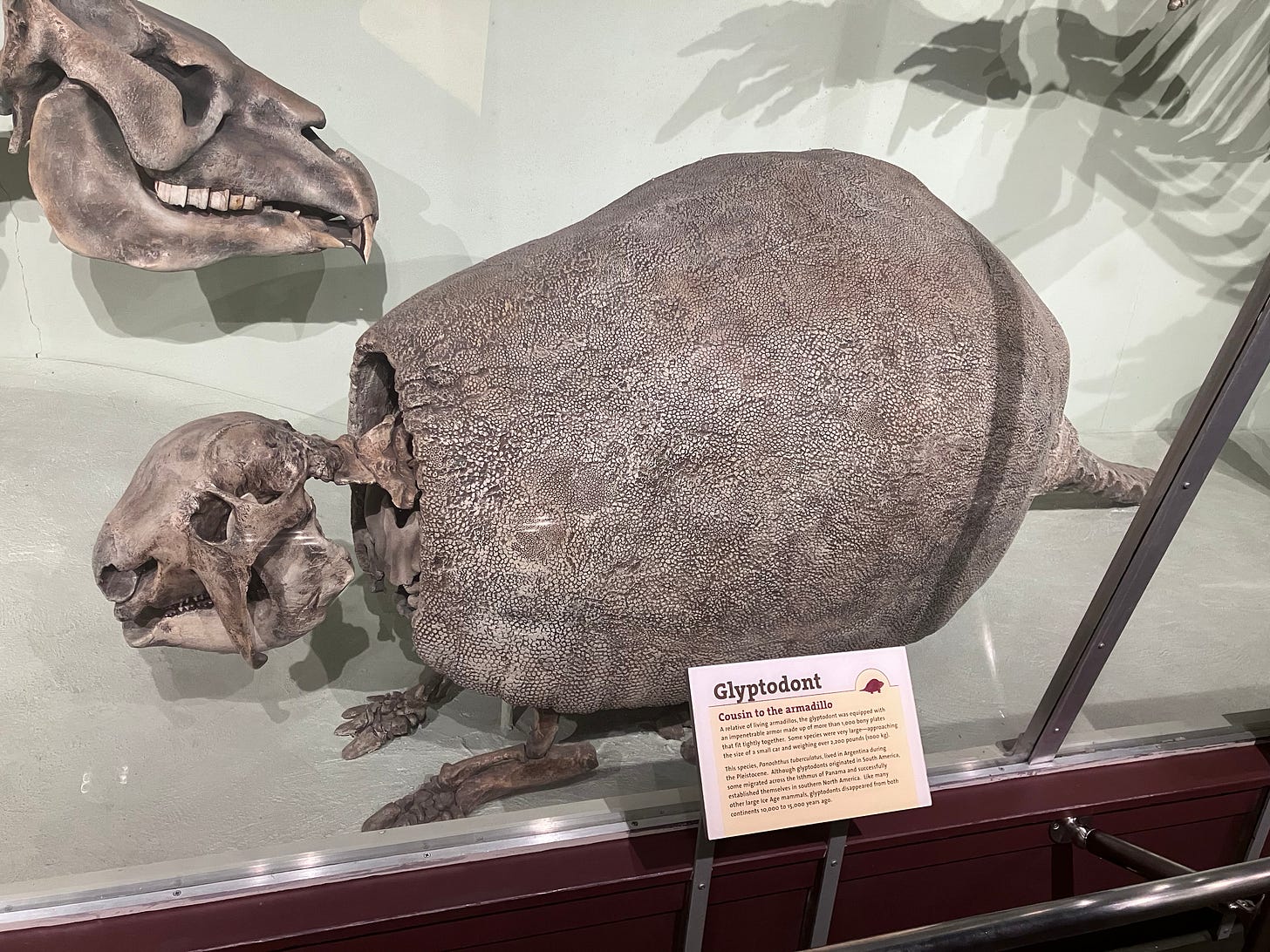 There was a turtleshell from the Orinoco basin in Venezuela that I could have starfished on. There was a land sloth that stood 12 feet. And there was this armadillo ancestor that easily measured 7 feet: